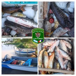 Como resultado del procedimiento, se procedió al decomiso de aproximadamente 1.200 piezas ictícolas, entre ellas ejemplares de surubí, dorado y sábalo, especies fundamentales para el equilibrio del ecosistema acuático regional.