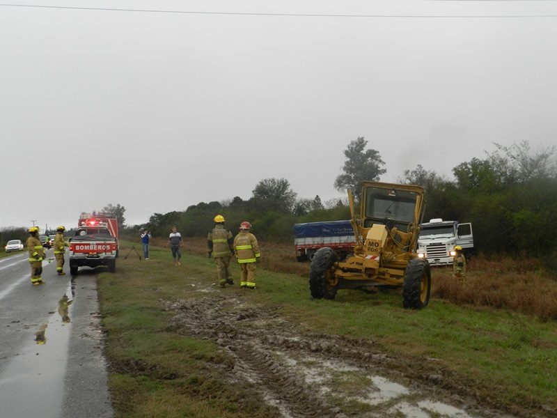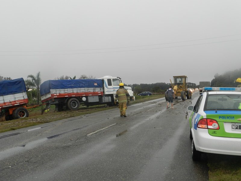 La maniobra se produjo cuando transitaba en sentido norte sur, aparentemente, en el mismo sentido circulaba un automóvil a muy baja velocidad sobre la ruta y al divisar que se aproximaba otro vehículo de frente, el conductor del camión realizó la maniobra de bajar de la carpeta asfáltica el vehículo de gran porte, evitando así colisionar con los autos y terminó en la cuneta.