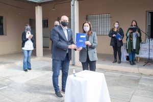 Luego del acto de licitación para la obra de la RP 1, la Presidenta Comunal María Verónica Devia acompañó al Gobernador de la Provincia Omar Perotti, al acto de firma de convenios con las 5 localidades del Departamento Garay para la puesta en marcha del Boleto Educativo Rural.