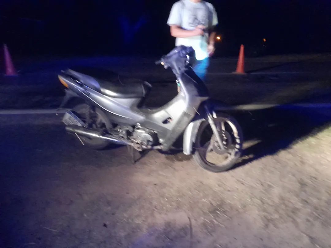 Comisionados en el lugar constataron que por causas que se tratan de establecer habrían colisionado una motocicleta marca comercial Guerrero trip 110 cc, en la que se trasladaban dos masculinos de 43 años de edad, con una bicicleta deportiva, guiada por un masculino de 33 años de edad.
