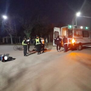 Ayer, a las 18:50 horas, el personal del Comando Radioeléctrico se vio involucrado en un accidente de tránsito en la intersección de las calles Alvear y Dr. de la Colina. En el lugar del siniestro, se constató que un motovehículo de la marca Honda 150cc, en el que viajaba una joven de 16 años, colisionó con una bicicleta tipo playera en la que se desplazaba un hombre de 62 años.