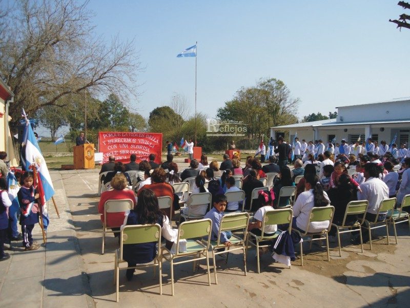 La ceremonia en el marco de los festejos por el Día del Maestro, se llevó a cabo en el patio establecimiento educativo ubicado en Colonia Indígena, al sur de la ciudad de San Javier, a pleno sol y con una buena cantidad de asistente.