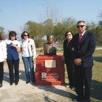 FOTO 1 – La familia Migno descubre el busto de Sarmiento.