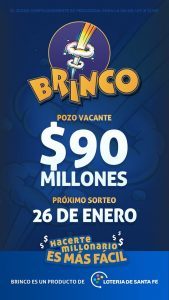 La Caja de Asistencia Social – Lotería de Santa Fe les recuerda que este domingo se concretará el próximo sorteo de Brinco con un pozo récord de $90 millones.