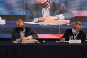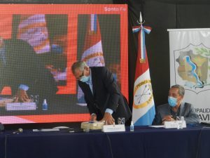 El Intendente de San Javier, Ing, Mario Migno recibió al Gobernador de la provincia, contador Omar Perotti para participar del acto de apertura de sobres, para la construcción de un módulo de Terapia Intensiva destinado al tratamiento Covid 19, ampliación de la Nueva Guardia y la refacción integral del Hospital “Dr. Guillermo Rawson”. El acto tuvo lugar en el Gimnasio del Club Huracán.