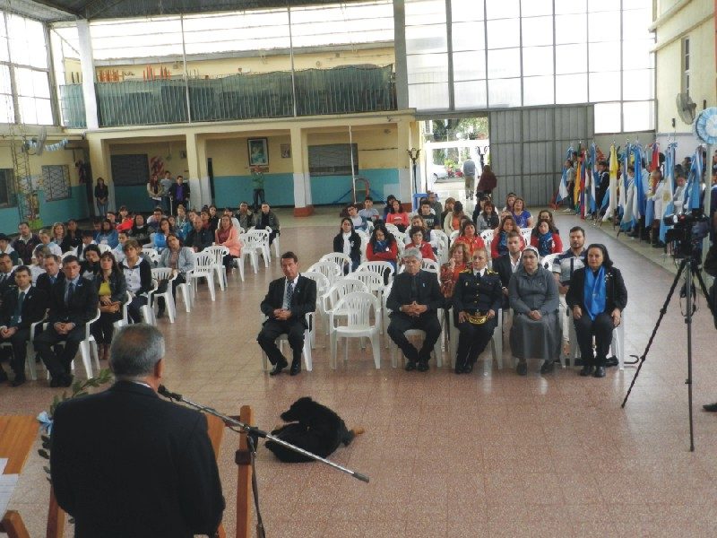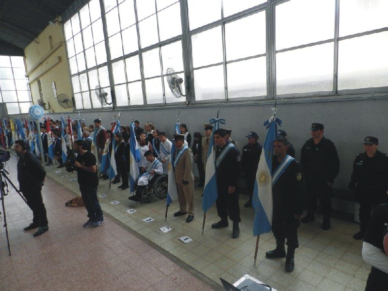 El acto central, se llevó adelante en el gimnasio cubierto del Colegio San José, debido a las malas condiciones climáticas.