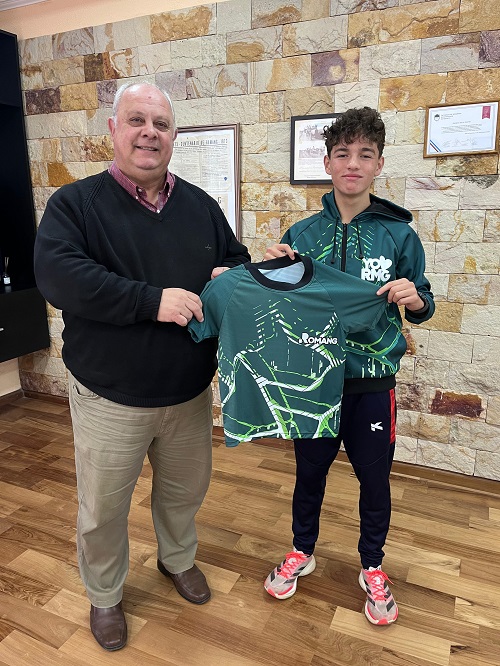 Durante el encuentro, el mandatario local hizo entrega de indumentaria deportiva identificada con los colores y el nombre de Romang, como reconocimiento al desempeño y compromiso del joven deportista.