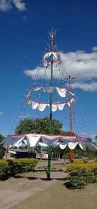 Para este 2020, la particularidad es que se reemplazaron las mangueras de luces, por las tradicionales bombitas, aunque ya con tecnología de tipo LED. Por otra parte, se ornamento con detalles realizado en plástico plateado con rojo.