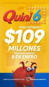 La Caja de Asistencia Social – Lotería de Santa Fe informa que durante el último sorteo de Quini 6 no se registraron ganadores con 6 aciertos quedando la totalidad de los pozos vacantes, estimando un total de 109 millones de pesos para el próximo sorteo.