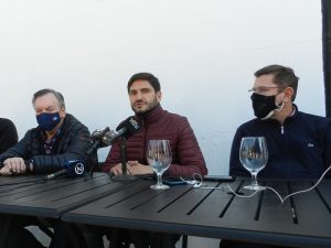 Pullaro llegó acompañado de los senadores provinciales Felipe Michlig (precandidato a senador suplente) y Rodrigo Borla (precandidato a diputado nacional), y los diputados provinciales Fabián Bastía y Juan Cruz Cándido.