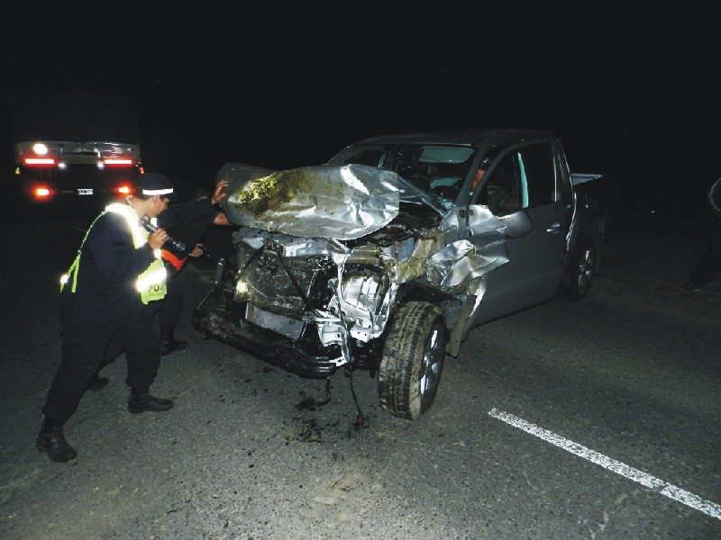 Fuentes policiales confirmaron que el accidente se produjo en las últimas horas del sábado, cuando una camioneta VW AMAROK dominio AA 412 OO conducida, por Carlos Ricardo S. de 67 años, quien era acompañado por su esposa Elda Beatriz B. de 57 años, domiciliados en Patagones, provincia de Buenos Aires. El vehículo circulaba en sentido norte – sur y al llegar a al paraje conocido como Zanja de la Nena, jurisdicción de Colonia Francesa, colisiona y mata a los cinco vacunos que se encontraban sobre cinta asfáltica.