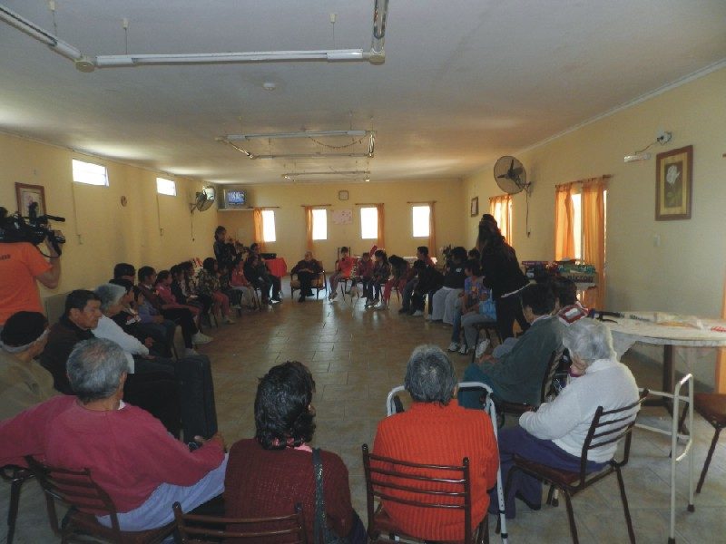 El emocionante encuentro de trabajo interinstitucional e intergeneracional. se desarrolló en el salón comedor del Hogar de Ancianos Nuestra Señora de la Merced.