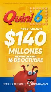 La Caja de Asistencia Social – Lotería de Santa Fe les recuerda que esta noche se realizará un nuevo sorteo de Quini 6 con un pozo estimado total de 140 millones de pesos.