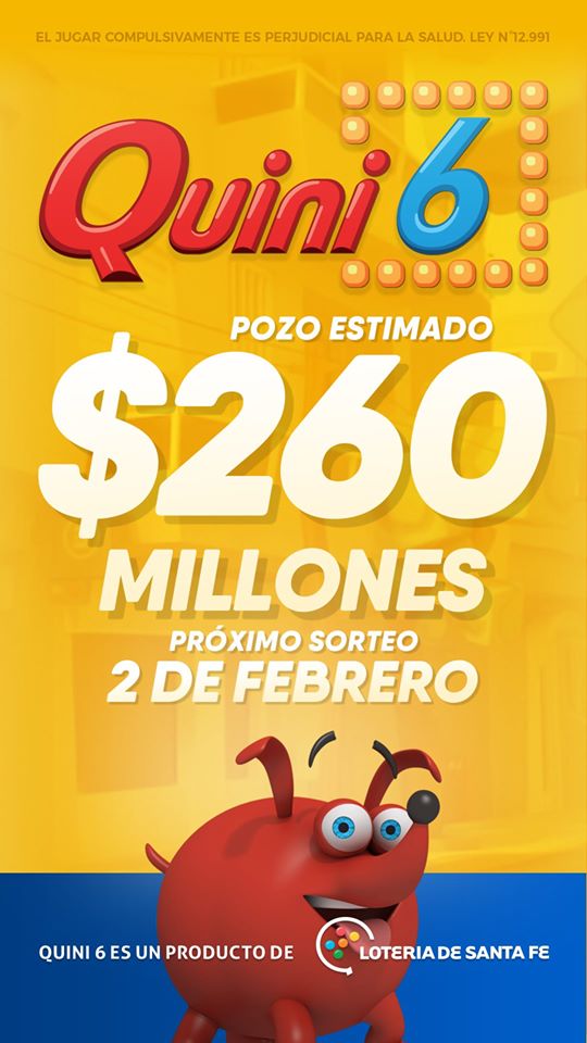 La Caja de Asistencia Social – Lotería de Santa Fe les recuerda que este domingo se sorteará el Quini 6 con $260 millones.