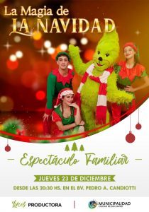 Luego del gran éxito del espectáculo infantil de la granja, llevado a cabo hace algunas semanas, la Municipalidad de San Javier invita ahora a la obra de teatro infantil “La Magia de la Navidad” que se llevará adelante el próximo jueves 23 de diciembre a las 20.30 horas.