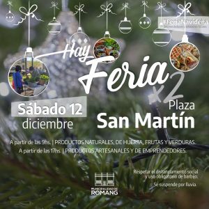Los emprendedores y artesanos de nuestra ciudad junto a la Municipalidad te invitan a visitar la segunda edición de la feria de productos navideños este sábado 12 en plaza San Martín.