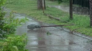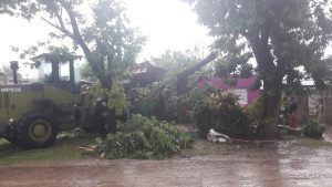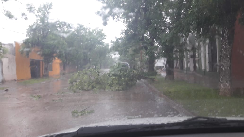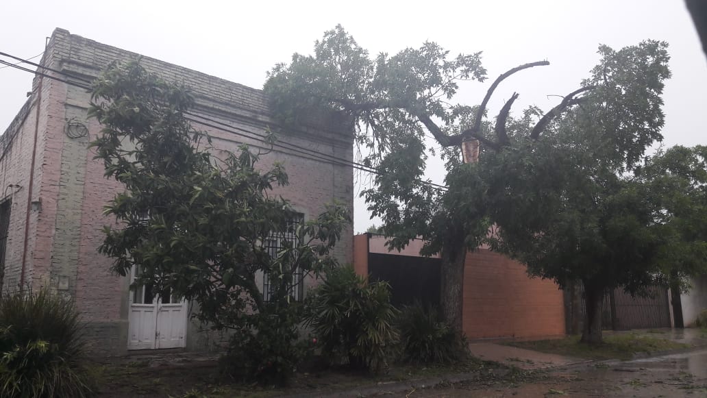 Cayeron árboles en la vía pública y columnas de alumbrado público. Las ráfagas de viento superaron los 60 Km por hora y el total de agua caída hasta las 14 hs. era de 43 mm.