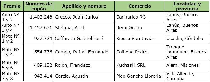 Dicho sorteo, que fue fiscalizado por el Escribano Público Sebastián Vigil, tuvo como cliente beneficiado al Sr. Eduardo Daniel Finós, DNI: 23 695 245. Por su parte el comercio que entregó dicho cupón y que por lo tanto también se hace acreedor de un premio es Casa Curletto.