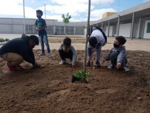 Gracias al trabajo en equipo es que se puede continuar con lo planificado, es el caso de los alumnos y docentes que están plantando y embelleciendo su lugar de pertenencia.