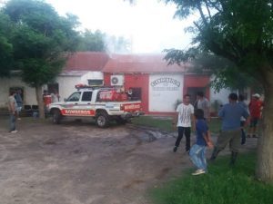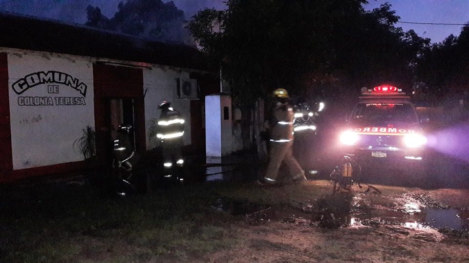 Dos dotaciones de Bomberos Voluntarios de San Javier, trabajaron para controlar un incendio que afectó el edificio de la Comuna de Colonia Teresa, ubicado a 40 Km., al norte de la ciudad de San Javier.