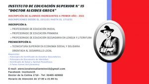 Instituto 15 abre inscripción para el ciclo lectivo 2022