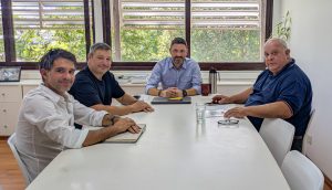 Este martes 10, el intendente Sergio Ramseyer se reunió en la ciudad de Santa Fe con el ministro de Ambiente y Cambio Climático, Enrique Estévez; el secretario Gustavo Leone; y el subsecretario Juan Martín, con el objetivo de avanzar en temas vinculados al tratamiento de residuos y al proyecto del Área Industrial que se desarrolla en Romang.