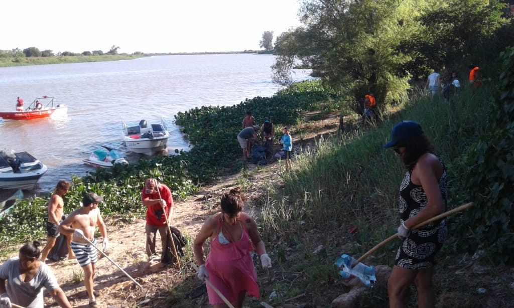 Tres lanchas particulares, un grupo de kayaks y la embarcación de Bomberos Voluntarios realizaron una cruzada por la limpieza del río y sus barrancas.