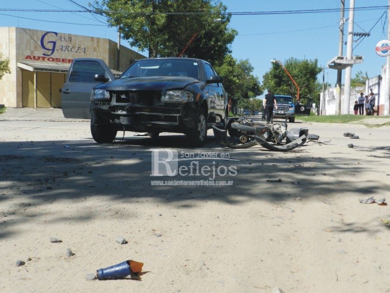 Como consecuencia del impacto el conductor de la moto fue trasladado de inmediato en una ambulancia del Samco San Javier, donde los facultativos del hospital Rawson le diagnosticaron lesiones leves. En tanto la ocupante del vehículo resultó ilesa.