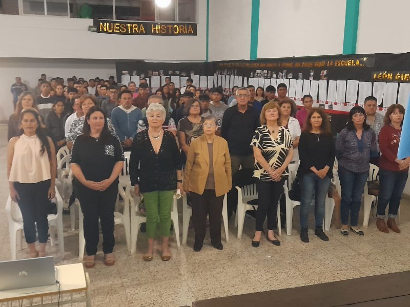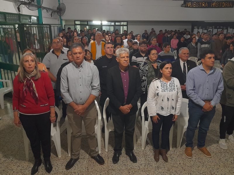 La ceremonia comenzó con el ingreso de las banderas de ceremonia, la entonación de las estrofas del himno nacional, seguido por la lectura de la declaración de interés del Concejo Deliberante. El senador José Baucero entregó una placa recordatoria en reconocimiento a la trayectoria y labor de la institución. Descubrimiento de un mural y entrega de reconocimiento a alumnos y profesor.