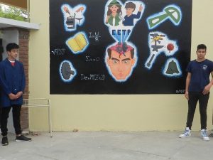 Para concluir la actividad, alumnos de tercer y cuarto año, junto a una profesora descubrieron un mural alusivo a los 80 años de la escuela y el coro el coro escolar interpreto tres canciones.