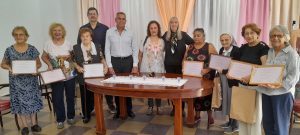 Doly Cabral: A lo largo de los años de tu trabajo, nos enseñaste a muchos que no hay placer que no se consiga a través de nuestro propio esfuerzo. Deportista, el tenis y el Básquet se vio muy bien representado por tu compromiso, el Club Central de nuestra ciudad te recuerda como una gran colaboradora en la inauguración del natatorio y otras actividades. Secretaria de la comisión fundadora del Hogar de Ancianos nuestra señora de la Merced. Participo del grupo de teatro vocacional. Miembro titular de “Historias de los Pueblos de la Provincia” y actualmente es amiga y colaboradora del Museo Parroquial. Su profesionalidad en la tarea docente merece nuestro reconocimiento, siempre entusiasta y llena de alegría gracias por toda tu entrega y tus aportes.