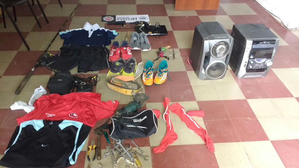 También se logró esclarecer un robo agravado por la participación de menores, siendo damnificados un hombre y una mujer, siendo los presuntos autores dos mayores y un menor de edad, personal Policial logró recuperar un equipo musical, un parlante, tres pares de zapatillas, un DVD, dos reels, un par de botines, prendas de vestir, un bolso, una amoladora, herramientas varias y se secuestro dos armas de fuego de fabricación casera.