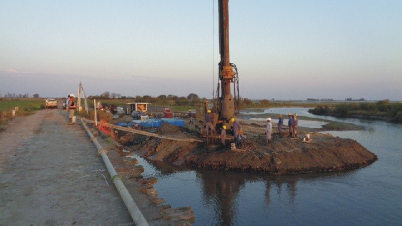 Siguiendo el cronograma del proceso, los inspectores de la DPV a cargo de los trabajos, explicaron que en estos momentos la obra «se encuentra en la etapa correspondiente a construcción de terraplén de accesos, corrimiento de alambrados, y colocación de los nuevos». También indicaron que «se construyeron los dos pilares de la pila del lado oeste».