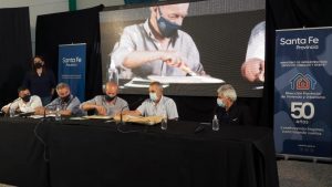 El acto se desarrolló en el salón de usos múltiples de la Escuela de Enseñanza Media Nº 242 “General Manuel Belgrano”, y fue presidido por el Secretario de Hábitat, Urbanismo y Vivienda, Amado Zorzón, acompañado por el director provincial de Vivienda y Urbanismo, José Kerz, el senador José Baucero, el Intendente Mario Migno y el Director de Relaciones Laborales, Mateo Marelli.