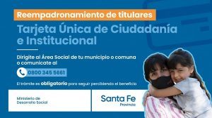 El Ministerio de Desarrollo Social, a través de la Dirección Provincial Programa Alimentario, informa que titulares de la Tarjeta Única de Ciudadanía e Institucional que a la fecha no realizaron el trámite, deberán reempadronarse para continuar percibiendo la prestación.