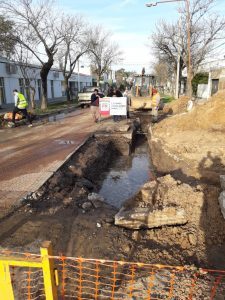 El inconveniente se registró en la obra de cloacas, donde una máquina de una empresa encargada de la obra rompió el caño.