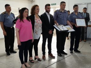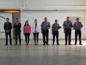 Durante este significativo momento, los titulares de la jefatura llevaron a cabo la entrega de merecidos reconocimientos a funcionarios policiales por su destacada labor, subrayando el compromiso y la dedicación demostrados en el cumplimiento de sus funciones. Ellos fueron: los subinspectores Maximiliano Orellano y Cintia Gorosito, y el oficial Jonatán Favot junto a la suboficial Florencia Bustos.