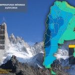 Se esperan valores de temperatura mínima por debajo de los 0ºc sobre gran parte de el área de cobertura durante los próximos días, con los valores mas extremos de temperatura mínima por debajo de los -10ºc sobre el norte patagónico. Asimismo las temperaturas máximas serán inferiores a 10ºc en la mayor parte de la región.
