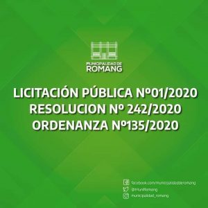 La Municipalidad de Romang informa: LICITACIÓN PÚBLICA Nº01/2020 – RESOLUCION Nº 242/2020 – ORDENANZA Nº135/2020.