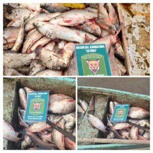 Durante patrullajes preventivos en áreas ribereñas, las unidades de Puesto Fijo Las Cañas y Colonia Corondina detectaron a tres hombres cometiendo infracciones graves. Se les encontró transportando y acopiando ilegalmente un total de 450 Sábalos y 15 peces amarillos, sin la licencia requerida para la pesca, y incumpliendo el régimen de veda y las medidas de tamaño establecidas por la ley.