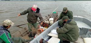 Prosiguiendo recorridas en zona de Isla, identificaron a siete ciudadanos, mayores de edad, los que realizaban actividad de pesca, carentes de licencia habilitante, procediendo al secuestro preventivo de dos redes de pesca fueras de las medidas reglamentadas, decomisando y desnaturalizando Sábalos, Armados varios, labrando Actas por Infracción a la Ley Pcial. N° 12.212 (ley de pesca). Interviene Secretaría de medio ambiente de la ciudad de Santa Fe.