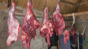 Con autorización, se procedió a una requisa en la vivienda, donde se hallaron cortes de carne vacuna congelada, rastros de sangre, grasa animal, prendas con restos hemáticos, cuchillos, linternas, y trozos de cuero en el techo de un gallinero. En el fondo del predio, se encontró un quincho improvisado con ganchos que sostenían más carne faenada, todo sin documentación ni explicación creíble sobre su procedencia.
