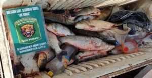 Efectivos Policiales procedieron a la notificación de tres (03) ciudadanos en zona de Islas, Arroyo leyes, Rio San Javier y costa del Rio Paraná, realizando la actividad de pesca en una embarcación tipo Piraguon acopiando la cantidad de 200 piezas sin vida de la especie Sábalos, Patis y Armados. Se les atribuyo Infracción a la Ley Pcial. N° 12.212 (ley de pesca), por realizar la actividad de pesca carentes de licencias habilitantes, por pescar, transportar o acopiar peces fuera de medida.