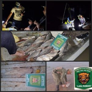 En el marco de sus patrullajes preventivos, efectivos de la Guardia Rural Los Pumas, de Puesto Fijo Las Cañas, interceptaron a tres individuos que transportaban una gran variedad de piezas ictícolas en la zona de su jurisdicción. Tras realizar las inspecciones pertinentes, los agentes confeccionaron actas de infracción por violar la Ley Provincial N° 12.212 y N° 12.722, que regula las actividades pesqueras.