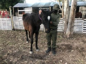 En la víspera personal policial del Destacamento con asiento en la Localidad de Arroyo Leyes de patrullaje preventivo por zona de esa jurisdicción observo un semoviente en un terreno baldío con las mismas características, de un caballo que fuera denunciado como sustraído en fecha 26/04/20, procediendo al secuestro de un animal equino, sexo hembra; seguidamente y previo comunicación, se hizo presente una Señorita de 24 años de edad, integrante voluntaria del predio «SOS CABALLOS» de donde resultara sustraído el equino, previo reconocimiento se le hizo entrega del animal de forma definitiva luego de presentación de documentación; Se prosiguen diligencias investigativas a los fines de dar con autores ilícito. Interviniente Fiscalía Regional Nº 1, de la ciudad de Santa Fe.