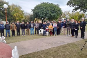 El emotivo acto se desarrolló, en la plaza Adolfo Mecca, al que también asistieron Veteranos de Guerra de Malvinas, el Senador José Baucero y los concejales Eduardo Baucero, Nahuel Rivoira y Marcelo Iturre; el presbítero Armando Cattaneo, la Secretaria de Cultura, Educación y Deportes Alicia Ocampo y el Subsecretario César Racca, así como familiares y amigos del homenajeado, representantes instituciones y los hijos de los veteranos.