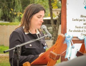 Maribel González, recordó en parte de su discurso: “Hace un mes, en este mismo lugar conmemorábamos el Día de los Veteranos y Caídos en la guerra de Malvinas, 40 años del inicio del conflicto bélico que se llevó la vida de muchos argentinos que defendieron nuestra soberanía en las Islas”.