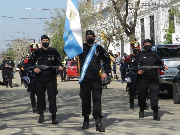 La organización estuvo a cargo de la Secretaría de Cultura municipal, en conjunto con la Escuela N° 436 y debido a las restricciones vigentes por la pandemia, el evento se realizó con una reducida cantidad que presentes. Se destacó fundamentalmente la participación de dos Granaderos, provenientes del regimiento ubicado en Buenos Aires, quienes más tarde en recorrieron la ciudad acompañados por escuadras integradas por personal de la Unidad Regional XIV de policía.
