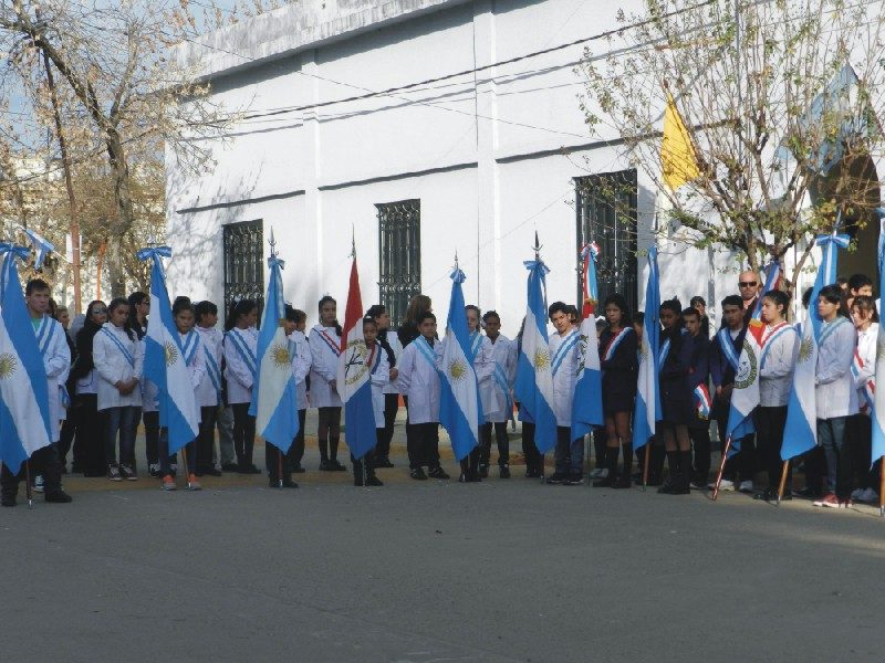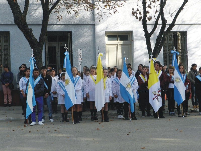 La conmemoración comenzó con el izamiento de nuestra Enseña Patria en el mástil central de plaza San Martín, para luego dar paso al Himno Nacional, se depositó una ofrenda floral en homenaje a los héroes de mayo y en el mismo sentido se llevó a cabo un minuto de silencio. La liturgia de la palabra estuvo a cargo del Padre Fernando Chiariotti.