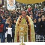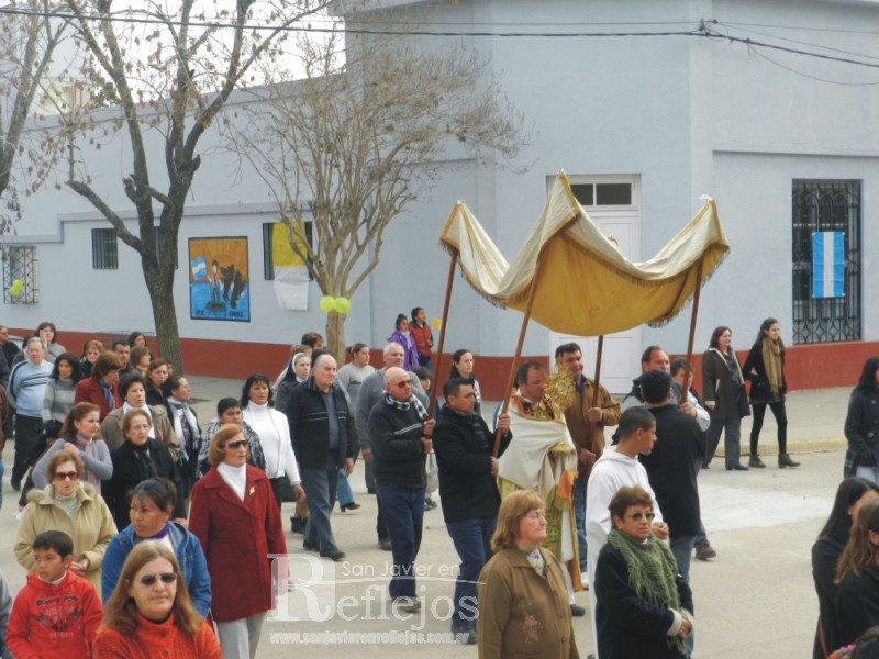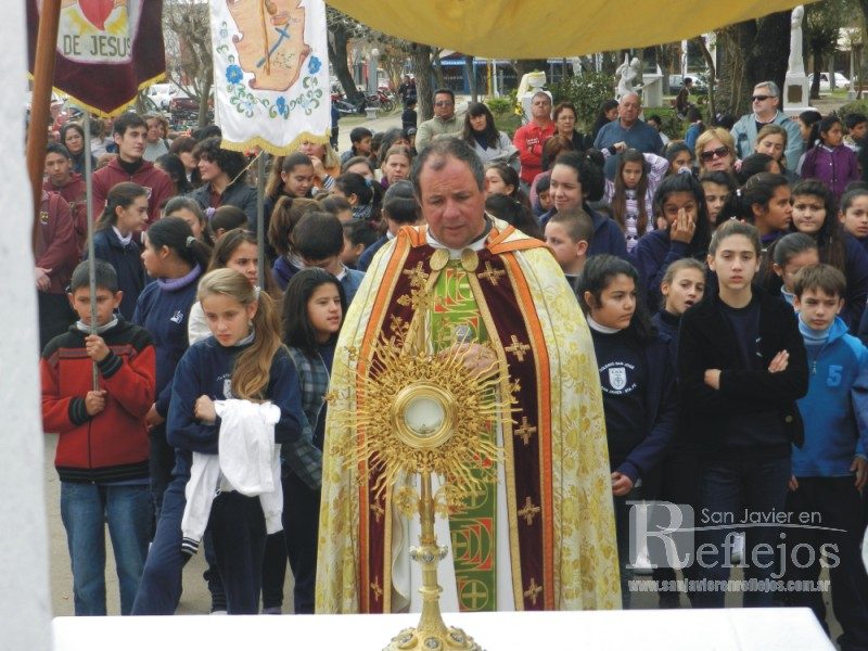 El presbítero Sergio Capoccetti presidió esta mañana la misa y posterior procesión de Corpus Christi. La celebración religiosa se realizó en el gimnasio cubierto del colegio San José, la procesión por las calles de la ciudad y la bendición final frente al templo parroquial.